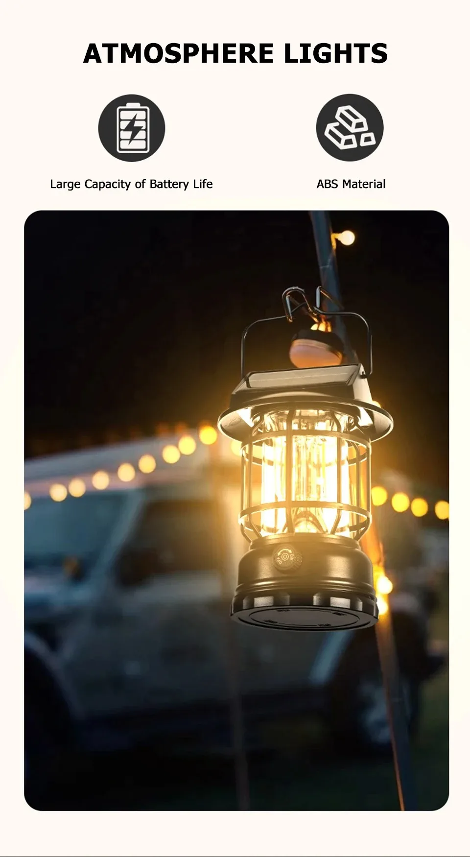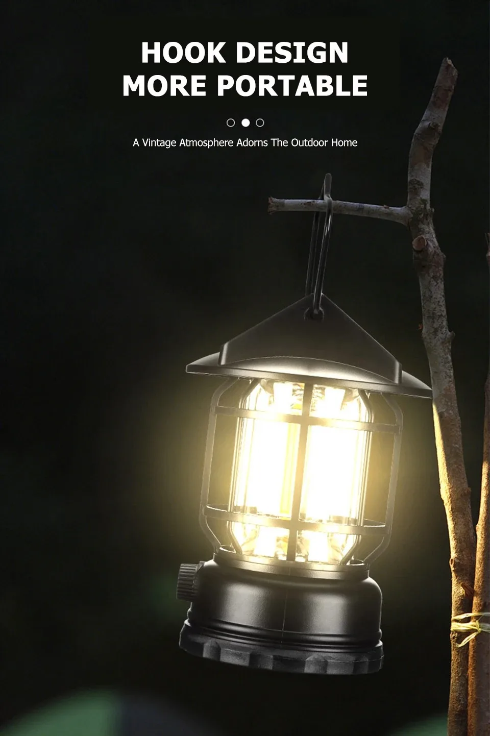 2. Portable hook design, both inside the tent and on the lamp post can be used for outdoor travel, making camping more convenient.