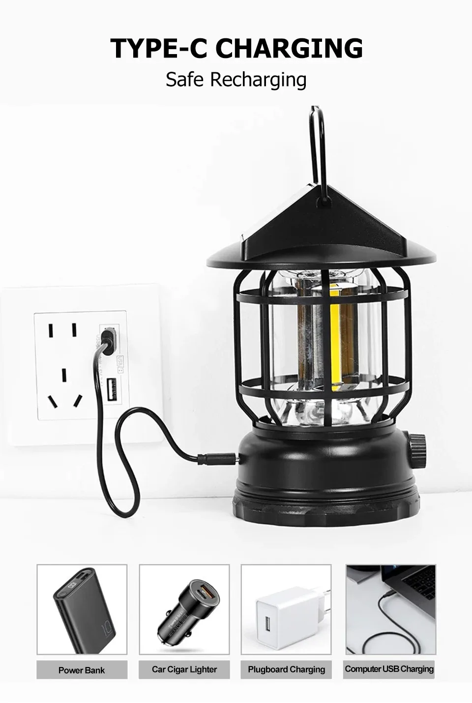 2. Solve the Trouble of No Electricity: Don't have an outlet when camping or hiking on the weekend? You can use your laptop or power bank to charge your flashlight. When your phone suddenly runs out of power, don't worry, you can also use the flashlight as an emergency power source to charge your phone..
