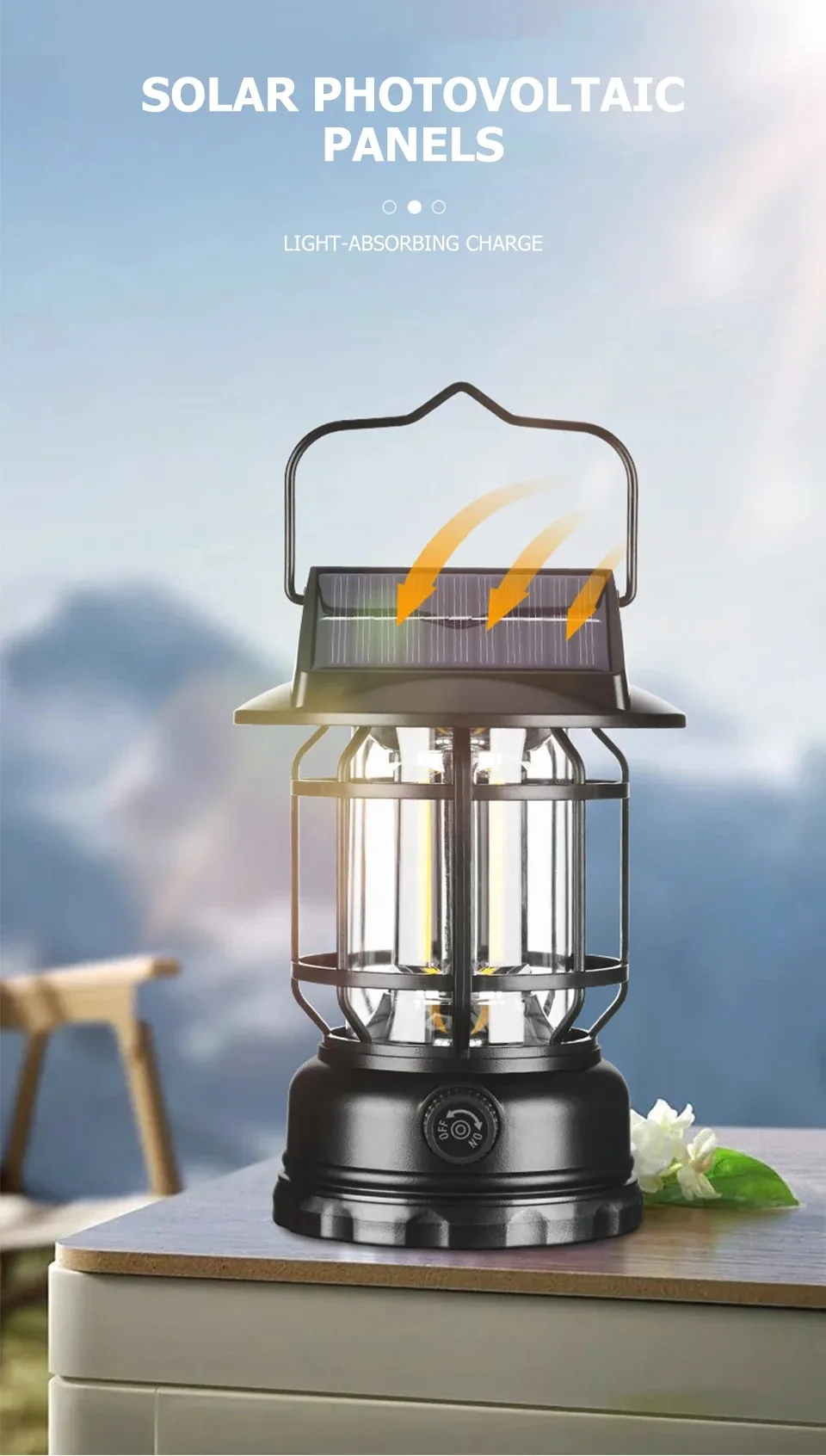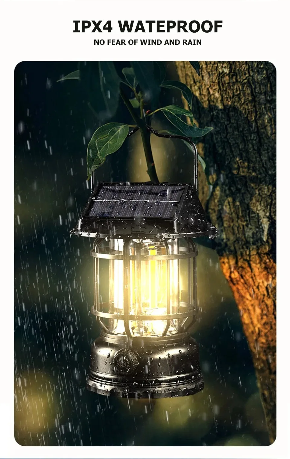 2-in-1 Portable Solar Camping Lantern LED Hanging Light USB Charging for Tent Hiking Emergencies Function Lamps